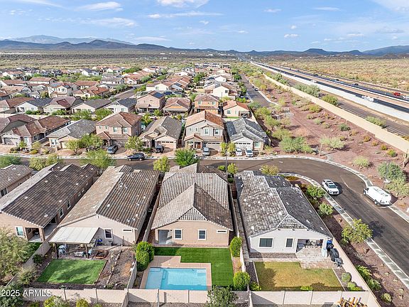Welcome to Circle Mountain Ranch. FHA/VA Eligible!! This Stunning 2019 Built Single Story Home Features a Pool and Split Floor Plan. Upon Arrival You Are Greeted with a Professionally Landscaped Yard, Paver Driveway and Gorgeous Entry. This Home Has 4 Bedrooms and 3 Bathrooms, and Just Over 1850 Sq Ft. The 2.5 Car Tandem Garage with Built In Ceiling Storage and Water Softener is Sure to Wow! The Kitchen Features Quartz Countertops, Dark Cabinets, Stainless Steel Appliances, Gas Stove and Full Pantry. The Primary Suite Offers Upgraded Luxury Vinyl Flooring, Full Bathroom with Separate Tub and Shower, Oversized Closet and Access to the Patio and Pool. Enjoy the Pool and Turf Area to Cool Off and Enjoy The Beautiful Views Anthem Community Has to Offer. Enjoy the Amenities Anthem has to offer - walking/hiking paths, parks, shopping, dining, golf & more all with EZ freeway access.