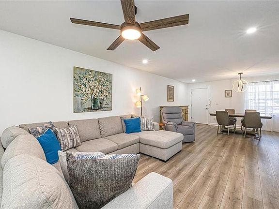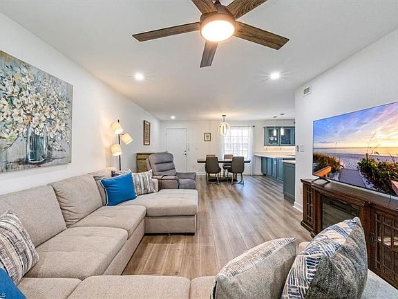 This charming furnished 2-bedroom, 2-bath end-unit condo is nestled in a small, quiet community in the heart of Park Shore. Completely remodeled, the home offers a light and bright open layout with luxury vinyl wood-look flooring and features a stunning kitchen with custom cabinetry, pullouts, a huge pantry, wine fridge, beautiful quartz countertops, and stainless steel appliances. The oversized primary suite includes a spacious walk-in closet and ensuite bath with dual sinks, custom cabinetry and a frameless, tiled walk-in shower. The guest bathroom has also been tastefully updated. Enjoy the large enclosed lanai overlooking lush landscaping for year-round enjoyment. Close it for additional air-conditioned living space or open the sliding doors to relax in the screened-in area. Just steps from the community pool and BBQ area, this home also includes a covered carport, guest parking, and bike storage. Perfectly located near shopping, dining, and downtown Naples, with optional membership to the Park Shore Association offering private beach park access.