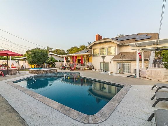 Welcome to the perfect entertainment home!!! This large tri-level home when entering into lovely foyer with half bath you walk into the family room with a separate game room with a built in bar, perfect for the adults while the kids are outside enjoying the large salt water pool or jacuzzi. If you make a right after walking in you will go up a flight of stairs to the second level where you will find a large living room and formal dining room set off the recently updated kitchen, which features new appliances including a commercial double oven with commercial hood vent with under lit soft close cabinets and drawers. If you go up to the third level you will find a large master suite with walk in closet and large his and her sinks, plus an additional 3 bedrooms and hall bathroom. With beautiful sliding glass doors from the game room or living room you will walk out into the perfect backyard for entertaining large crowds of family, friends, or neighbors. From the outdoor kitchen with built in BBQ and counter space there is plenty or room for cooking an eating or maybe you want to relax outside under the covered and gated patio to watch the game with 1 of your 2 outdoor TV's, or sitting around making smores with the natural gas fire pit. The list goes on and on... this is a MUST SEE!!! See you in escrow...