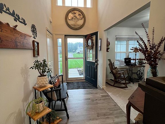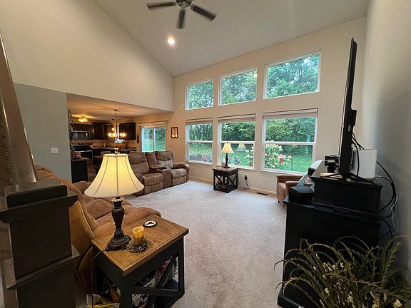 Welcome to an exquisite sanctuary nestled between the charming locales of Tecumseh and Adrian. This distinguished 4-bedroom, 2.5-bathroom residence epitomizes luxury and comfort, offering an unparalleled living experience. The primary suite, a haven of tranquility, is thoughtfully situated on the main floor, ensuring privacy and convenience. Step into the grand living area, where soaring ceilings create an atmosphere of elegance and spaciousness. The gourmet kitchen is a chef's delight, featuring a generous pantry and a delightful eat-in space, perfect for intimate meals or grand entertaining.