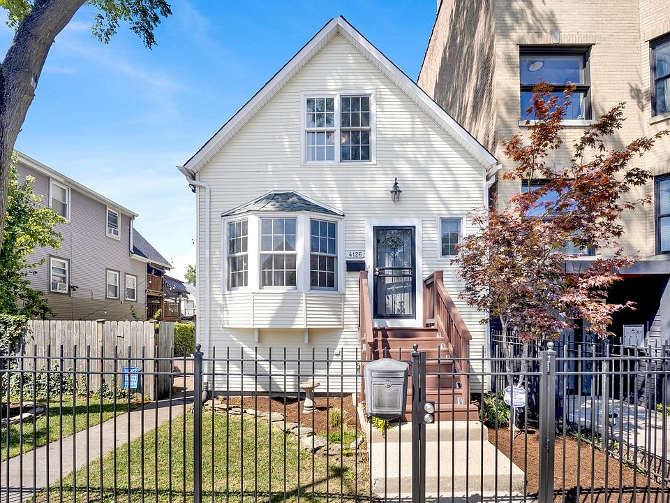 Light, bright & airy 4 bedroom, 2 bath home on extra-wide lot in Irving Park. Set on a 37.5' wide lot, this home enjoys tons of light and a wonderful feeling of space as you move through the intelligent layout. The main floor features spacious living room with bay window, which connects to your dining room, with views of the landscaped side patio. Step into your massive, updated white kitchen with granite counters, GE Monogram stainless steel appliances (including 6 burner range), massive island, walk-in pantry & an attached family room/breakfast area. Flow outside to a true urban retreat: spacious back deck, which steps down to your massive yard, including bonus patio that is a great spot for outdoor dining or outdoor movies. If you like to entertain, this house is made for you! Upstairs, you'll find 3 bedrooms, including a primary that fits a king-sized bedroom. The finished basement offers an additional family room with office/den area that is perfect for guests (we currently have a queen sized bed there), full bath, laundry plus a spacious 4th bedroom with cool reading nook - which could easily double as a private home office, guest quarters, home gym or more! 2 car garage plus parking pad for 2 additional cars, fully fenced yard. Convenient location near CTA Bus and Irving Park blue line, near restaurants and the best part....across from Miko's Italian Ice! Taxes do not include homeowners exemption. Come home! **Multiple Offers Received - Buyers are invited to submit their best offers by 5pm Monday, August 25th.**