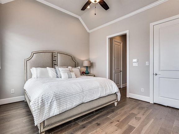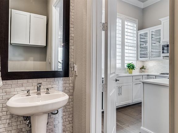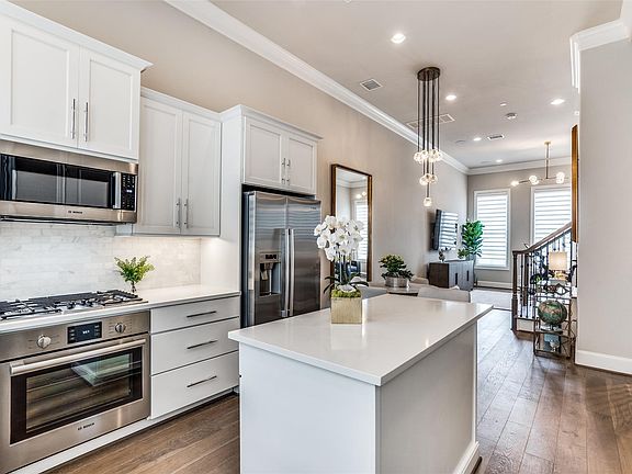 Gorgeous, townhome in desirable Addison Grove. This beautiful home has exquisite finishes like wood floors throughout, quartz countertops, soft close cabinets, 12 ft ceilings, Bosch appliances, Hans Grohe plumbing fixtures, designer lighting and specialty window coverings with electronic remote features. A 2-car garage is oversized with tons of storage space. The primary suite has a large shower with seat and frameless glass. Secondary bath has tub-shower. Powder bath on second floor with living space is perfect for guests. Both bedrooms are on the 3rd floor but on separate sides of the home. Addison Grove has 3 city parks within the community and provide the perfect space for pets or just enjoying the outdoors. Fantastic Addison location is walking distance to many restaurants and 15 min from DFW airport, downtown, Legacy West Business Park and many other places. Enjoy the Addison Athletic Center! **Please note NO PETS ALLOWED FOR THIS PROPERTY**