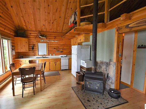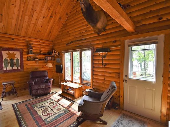 This privately set 2 bedroom log cabin is nestled on just over three acres of gorgeous hard woods. Well maintained cabin features a roomy open loft for additional company, wood burning fireplace, and warp around deck for the beautiful lake views. Located near; golfing, hiking trails, X-country ski trails, and great fishing. These two lots boost over 350 feet of pristine lake shore on the crystal clear shores of Chase Lake. The two stall detached insulated garage has guest quarters above. This is a must see property!