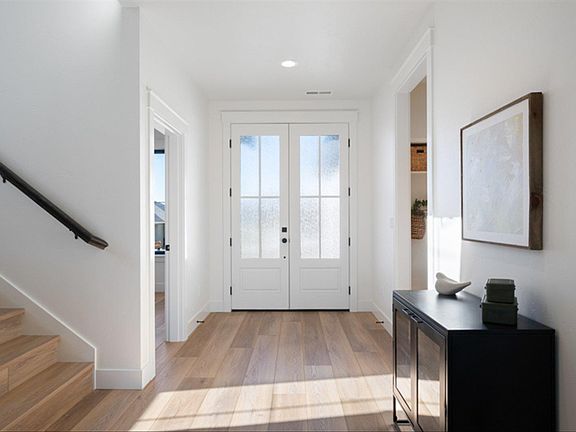 Stucco exteriorThree-car garageRich hardwood floorsMain-level primary suiteBarn doorsOversized west-facing back patioAnderson windows