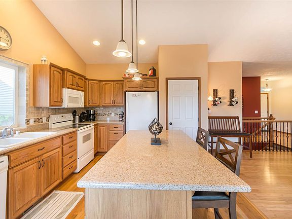 Vaulted great room concept with granite kitchen and big island. Hardwoods too. Spacious master with full bath. Vinyl siding and vinyl windows. Beautifully clean home with large daylight basement. Large family room, 2 bedrooms and new bathroom. Lots of space in this home for your family. Beautiful backyard with garden space, nice landscaping and large private deck. Check this out!