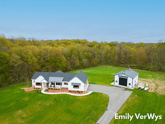 Introducing your dream home! This nearly-new modern farmhouse-style ranch, situated on 11+ beautiful acres of privacy, offers the joy of a new home without the headache associated with building. As you step inside, you'll immediately appreciate the warm and inviting ambiance that permeates throughout the home. The open floor plan seamlessly connects the living room, dining area, and kitchen, making it perfect for entertaining family and friends. The gourmet kitchen features high-end appliances, custom cabinetry, ample counter space, and a walk-through pantry. The screened-in three-season room is the perfect spot to enjoy your morning coffee or watch wildlife in the backyard.