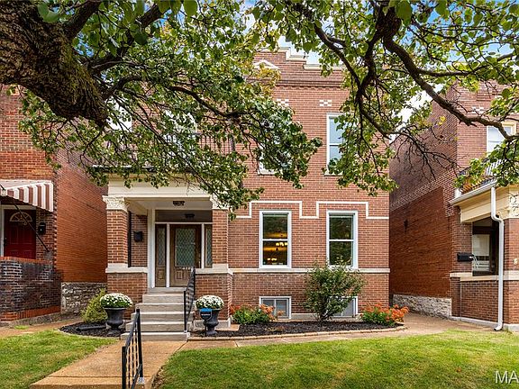 Full-brick 2 Sty extensively updated throughout while maintaining the charm & character of historic architecture. Located on a tree-lined street in Tower Grove South. Covered porch entrance leads to spacious living room with refinished oak hardwoods & original brick fireplace and light-filled family room. Wide arched entryway opens to dining room with wine bar, adjacent sunroom and chef’s kitchen with 42” white cabinetry, granite countertops, stainless steel appliances & 6’ center island. Hardwood floors continue to the 2nd level with primary bedroom suite with 2 walk-in closets, luxury bath & sitting room plus three additional bedrooms—one ideal for a nursery or home office share a stylish full hall bath & convenient laundry. Situated on a private lot with fully fenced backyard with paver patio & detached 2-car garage. Walkable neighborhood just minutes from Tower Grove Park, local coffee shops, restaurants & Mann Elementary with easy access to Hwys 44 & 40.