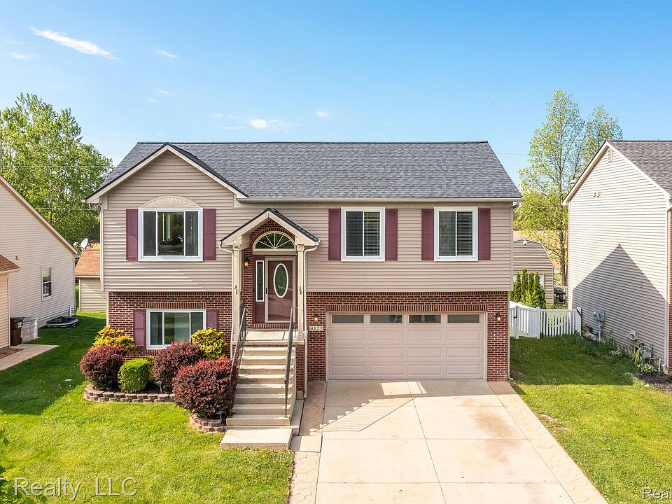 Curb appeal starts at the street. New shutter paint sets off the brick and vinyl exterior, and a deep concrete drive leads to an oversized two-car garage of roughly 490 square feet. Inside, the carpets were just professionally cleaned and feel brand-new. The vaulted main living room flows into an eat-in kitchen and dining area that is perfect for daily life or entertaining. A sliding door opens to a wide, multi-tier deck that steps down to a fully fenced back yard. Instead of rear neighbors you will enjoy open field views.