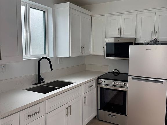 Be the first to live in this newly built two-story residence in the heart of Leimert Park. This modern home offers about 1,000 square feet of bright, open living space with laminate wood flooring, high ceilings, and recessed lighting throughout. Enjoy central air and heat, an in-unit washer and dryer, and solar panels to help reduce electricity costs. The kitchen is equipped with stainless steel appliancesrefrigerator, oven with stove, and microwave hoodwhile the Carrera marble bathroom adds a clean, modern touch. The home also features ample closet space and is part of a secured building with surveillance cameras and coded entry for added peace of mind.