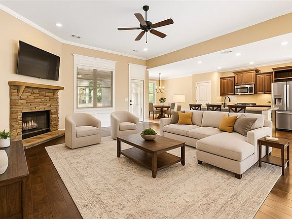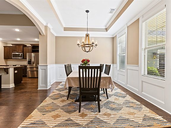 Welcome home to easy, single-level living with style and space. The generous primary suite is a true retreat with a soaring ceiling, two large closets, a garden tub and a spa-style shower with built-in seating. This 4-bed, 2.5-bath residence blends an open layout with classic touches: a formal dining room with a coffered ceiling, a breakfast room, and a chef-friendly kitchen anchored by a large island and walk-in pantry. High ceilings carry throughout, keeping everything bright and airy.
