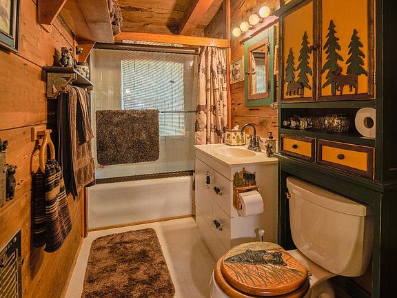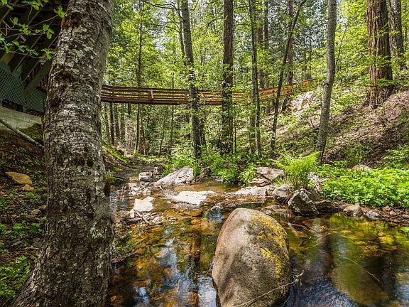 Over the river and through the woods...this adorable, fully furnished 3 bedroom, 1 bath cabin is as charming as they come! After crossing the private suspension bridge, you'll find yourself with plenty of privacy on the 1/2 acre lot, with forested views that can't be beat! As you walk into the main cabin space, you'll find rustic pecky cedar walls throughout. Stay warm all winter long with the wood stove in the living room, and enjoy the summer splashing in the creek or barbecuing on the deck overlooking the creek.