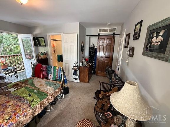 Tax abated through end of 2027! Beautiful & charming 2 story home w/6 rms., 3 bdrms., 2 1/2 baths! Featuring an equipped kitchen w/beautiful cabinetry, granite countertops, backsplash and ceramic flrs. Great room w/fireplace, wood floor and ceiling fan. Unique floor plan affords privacy with the 1st floor bedroom w/large closet and 2nd floor Primary bedroom with ensuite bath, vanity w/granite countertop & new shower 2022. Barn door to closet and small balcony overlooking back yard, a great way to relax in the morning or the evenings! 2nd floor loft w/wood floor. 2nd full bath w/tub & shower combination w/ceramic tile walls in shower and ceramic tile flr., vanity w/granite countertops. 2nd floor laundry. 3rd bedroom w/ceiling fan & lots of windows. 2 car garage w/opener stamped concrete driveway. Fully fenced yard 2018! Fully insulated attic 2018. New HVAC system 2022. New copper water lines 2024. Sealed & insulated the crawl space 2019. Garage painted & new gutters 2025 Pollinator yard