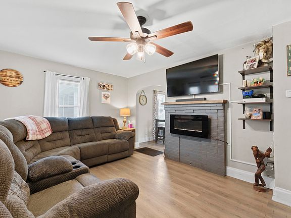 This charming 2-bedroom, 1-bath home has everything you need and then some! Step inside to a warm and inviting living space featuring a cozy fireplace accent, perfect for relaxing evenings at home. The kitchen boasts stainless steel appliances and great flow, making mealtime a breeze.  Outside, you'll love the fenced-in yard, ideal for pets or play, plus a back patio area ready for summer cookouts. And if you’ve been dreaming of a pool, you're in luck—there’s an above-ground pool for those hot days! A detached garage provides plenty of storage or workspace, and the covered front porch is perfect for morning coffee or winding down at sunset.  With its spacious layout and bonus features, this home is ready and waiting for you!