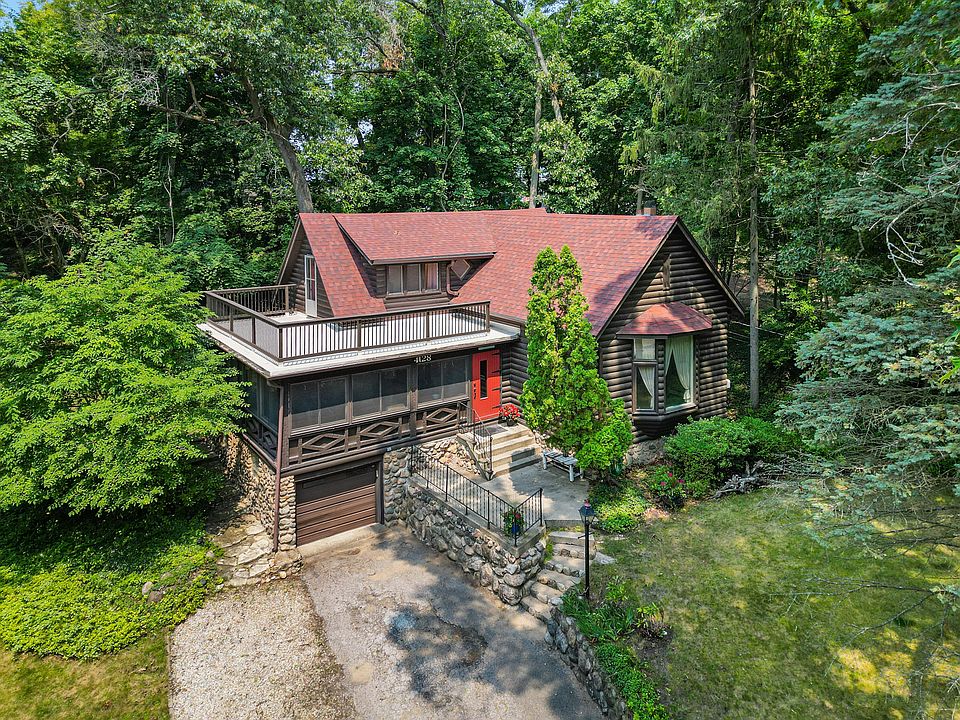 Rare opportunity to own a sought-after original Michiana log cabin, now featuring a newly finished balcony perched in the treetops—perfect for morning coffee or evening stargazing.