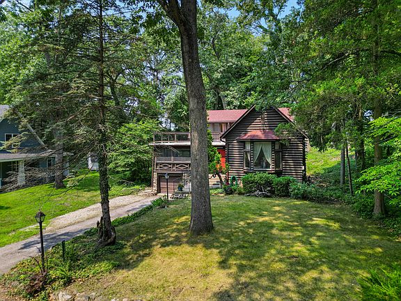 Nestled in the heart of Michiana, this charming log cabin offers the perfect blend of rustic character and lakeside living. Featuring 3 bedrooms and 2 baths, the home boasts vaulted ceilings, a striking fieldstone fireplace, and a spacious three-season porch—ideal for relaxing after a day at the beach.