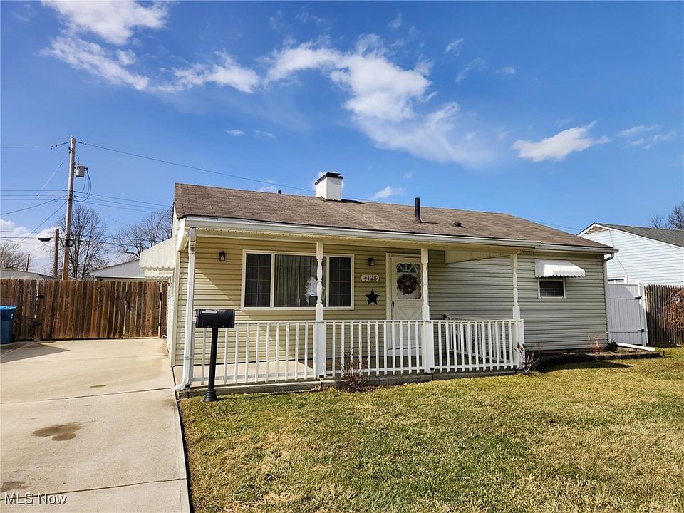 Take a look at this sought after Ranch that is move in ready!!! If you're just starting out or you're looking to downsize, then this is it!!! Everything on one floor!! The eat in kitchen is going to be a breeze to clean up! All appliances stay! The living room has new carpet and a picture window letting tons of light in. The full bath is clean as a whistle and there are 3 bedrooms!! Laundry is right off the kitchen and comes complete with a utility tub and a newer furnace (2024). Outside is a fantastic 2 car detached garage that can be your work area!! There is not one but two sheds and is completely fenced in for privacy and/or furry little friends. Backyard has 220 hook-up for maybe a side job. The concrete driveway is the cream of the crop...it winds down the drive, in front of the garage, over to the back of the house and down the side of the garage! This back yard comes just in time for summer with the perfect spot for a gazebo with some lights and nothing else but relaxing!!! Call for your personal tour today!!