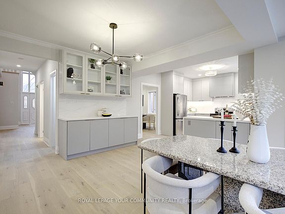 Welcome to 4128 Tapestry Trail - Exclusive address. Custom built. Exceptional living. Set on a 59 ft premium lot on one of Rathwood's most prestigious streets, this beautifully renovated home offers 3,655 sq ft above grade plus a finished basement (1,800 sq ft) with a separate entrance-perfect for extended family, guests, or in-law suite. Inside, enjoy new flooring, porcelain tiles, fresh paint, modern lighting, and pot lights throughout. The custom kitchen features quartz countertops and backsplash, an eat-in area, built-in servery, showcase cabinetry, and ample storage-ideal for everyday living and entertaining. The home also includes a new spa-inspired primary ensuite, new porcelain-tiled remodeled laundry room, chic custom powder room, oversized living and dining rooms, inviting sunken family room overlooking to kitchen, and generously sized principal rooms with great flow. The south-facing backyard provides abundant sunlight-perfect for gardening, lounging, or outdoor dining. Offers 4+1 beds; 4 baths; carpet free interior; 2 laundries; grand foyer with double entry door, porcelain floors & vaulted ceilings! Located in a sought-after neighbourhood close to top-rated schools, parks, trails, shopping, transit, and major highways, this is a truly move-in-ready home offering comfort, convenience, and luxurious updates throughout. Parks 7 cars total! Move into this renovated spacious home & make it your forever home! See 3-D!
