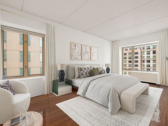 Excellent layout of the expansive living room allows you to furnish with style and ease. Pay the amortized rent, a rare find! Spacious king bedroom equipped with deep closets and additional space for a desk/dresser.