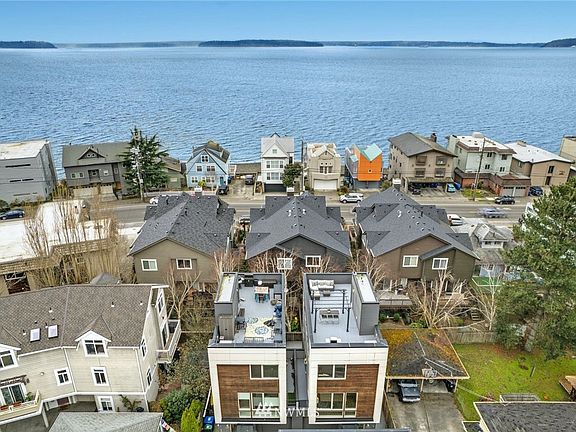 Enjoy the beach life and carefree living in this luxury contemporary stand-alone townhome a half block off Beach Drive. Rare find with three bedrooms each with its own bath, including upper-level primary suite with walk-in shower and heated floors. Open floor plan on main level with hardwood flooring, gas fireplace and cook's kitchen with gas range, quartz countertops, designer cabinets and tiled backsplash. Entertain and enjoy the sunsets from big roof top deck with Sound and Olympic Mountain views. Attached Garage. Tucked away in quiet pocket around the corner from La Rustica Bistro yet only a short walk to all the restaurants, shops, cafes and bars along Alki Beach.