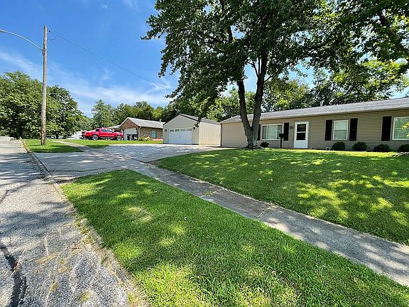 Very spacious, open concept home with connected kitchen and living area with updated appliances! 2 bed, 1.5 baths. There is brand new stamped concrete poured for the back patio, front porch and walkway for tons of outdoor hang out area. Sitting on a double lot, the detached 2 car pole barn garage is one of a kind in the neighborhood, making it great for lots of room for storage. Laundry room, storage rooms, oversized bathroom and 2 bedrooms with 2 closets per room, this home has everything you need!