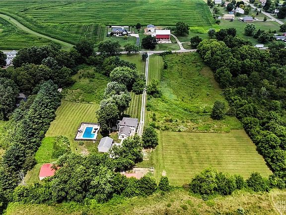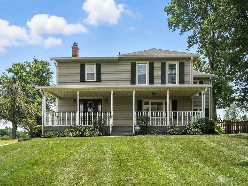 Welcome to this stunning farm home offering over 2,500 square feet of living space, nestled on nearly 8 acres of picturesque land. This charming residence features four spacious bedrooms and 2.5 beautifully updated bathrooms, making it perfect for those seeking a serene retreat. Step inside to discover a large, open living room and dining room, highlighted by a cozy fireplace that adds warmth and character. The updated kitchen boasts a skylight, flooding the space with natural light, and is perfect for culinary enthusiasts. A generous mudroom with a convenient half bath leads directly outdoors, making transitions seamless. French doors off the dining room open to a fenced-in inground pool, just four years old, complete with a heater and diving board—ideal for summer entertaining and relaxation. Pool is saltwater system. Heat pump is (2025) At the back of the property, you'll find a barn designed for your farm animals and an additional outbuilding offering endless possibilities for use, whether it be for storage, a workshop, or creative pursuits. Upstairs, the four bedrooms provide ample space for rest, while all bathrooms have been tastefully updated with ceramic tile, including a luxurious stand-up shower and a whirlpool tub for ultimate relaxation. Enjoy the tranquility of country living with modern updates that enhance this beautiful home. Don't miss your chance to own this slice of paradise on New Carlisle Pike!