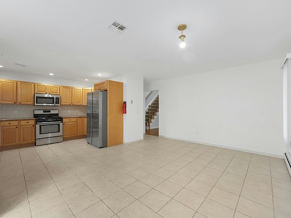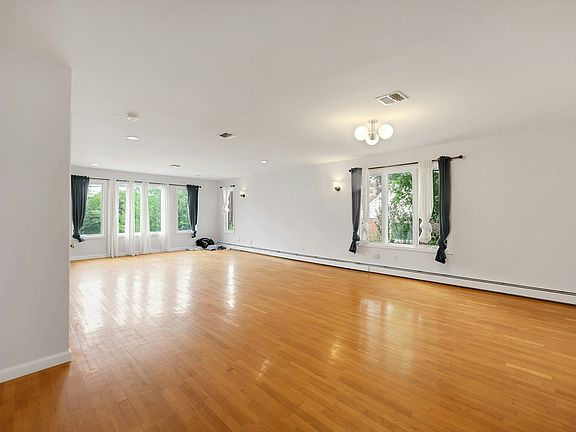 Location, Location, Location! Just steps from Broad Avenue, this beautifully maintained oversized duplex offers spacious, sun-filled living with a stylish, open layout. Featuring gleaming hardwood floors throughout, high ceilings, L.E.D. lighting, central air, and two-zone heating, this home blends comfort with modern design. The main level boasts a bright and airy living and dining area, a convenient powder room, and a gourmet chef's kitchen complete with granite countertops, stainless steel appliances, ample cabinetry, and in-unit washer/dryer. Upstairs, the second floor offers a large master suite with a fully en-suite bathroom, two additional large bedrooms, and another full bathroom. The ground level features a private entrance, perfect for extended family or guests, with a bedroom, summer kitchen, living room, and direct access to the attached two-car garage. Commuter's dream just a 2-minute walk to the NY bus. Don't miss this opportunity to live in a prime location with space, style, and convenience!