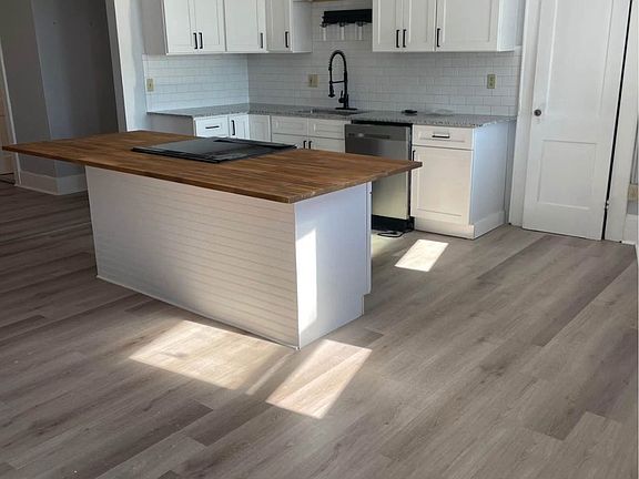Lots of natural lightHigh ceilingsButcher block islandGranite countertop