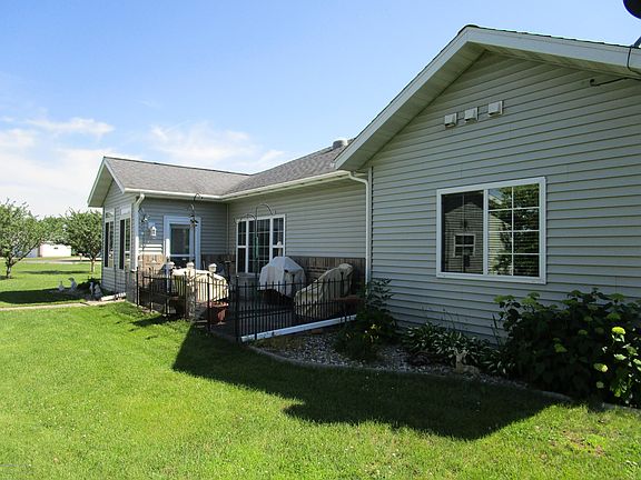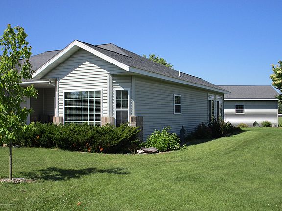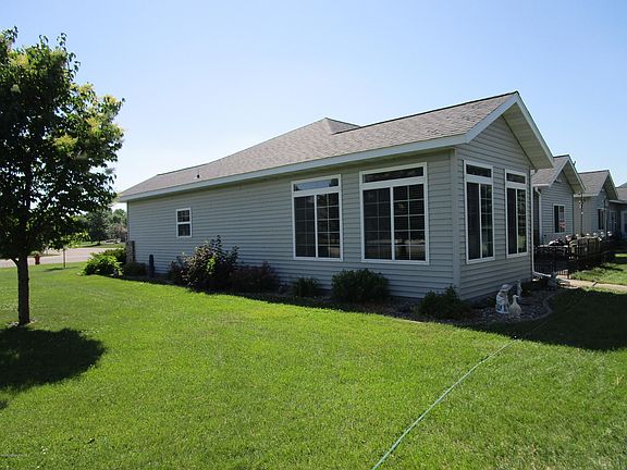 PERHAM One Level Living Twin Home located on an oversized lot that includes a 2 stall attached finished garage PLUS an oversized finished and heated single stall workshop / garage. Well designed floor plan that boasts a large open kitchen with beautiful custom cabinets, a sunny eat-in dinette, formal dining room / living room with cozy gas fireplace and lots of windows to enjoy the beautiful backyard. Home offers a great sunroom separated by pocket doors off dining area! Comfy room that leads to back yard patio, or can be used as 3rd bedroom. Master Bedroom has private bath and walk-in closet. Nice sized 2nd bedroom with a full bath down the hall. Main floor laundry conveniently located off garage entrance. Welcoming porch entrance, and large backyard patio - Easy Living