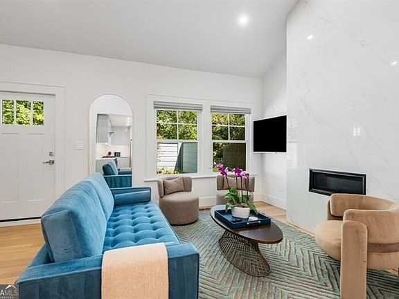 Fabulous FULLY FURNISHED renovated 3-Bedroom, 3-Bath Home, delightfully located 2 blocks from Piedmont Park, ready to be enjoyed for SHORT or LONG TERM. Enter through the professionally landscaped private courtyard garden terrace, designed for relaxation and entertainment, into a beautifully decorated open floor plan with vaulted ceiling radiating natural light. Lovely Chef's Kitchen featuring Pekten countertops & backsplash, high-end sleek white cabinetry, Cove Stainless Subzero & Dishwasher, Dining Island, built-in Microwave, 4-burner Gas Stove with griddle, and thoughtfully stocked with Kureig & Ninja coffee makers, Nutribullet, Crockpot, etc. open to Family Room w/ gas fireplace surrounded by Pekten wall finishes. Main Level also includes 2-Bedrooms (King & Queen Beds) flanked on either end of Kitchen w/ en-suite (tub/shower combo, & shower only) Bath's. New Electrolux stacked Washer & Dryer and large storage closet in hallway. Take the modern circular staircase to the Upper Level Bedroom suite with office area, walk-in closet, and Bath with a fabulous triple rain head shower. Modern lighting, along with recessed lighting, and automatic lighting sensors in each closet, as well as under each vanity. White oak flooring throughout w/ tile flooring in each Bath. Exceptional features include 55" Smart TV's in each room, window treatments with day & night settings, high speed internet. Hard to find off-street parking, permitted street parking, and excellent walkability to Piedmont Park, Trader Joe's, our fabulous Beltline, Ponce City Market, shopping, restaurants, and many other attractions Atlanta has to offer, just a short Uber ride away. Perfect home and location for Film & Television Production Housing, alternative Housing for a renovation project, or to accommodate an insurance relocation. A gem!!