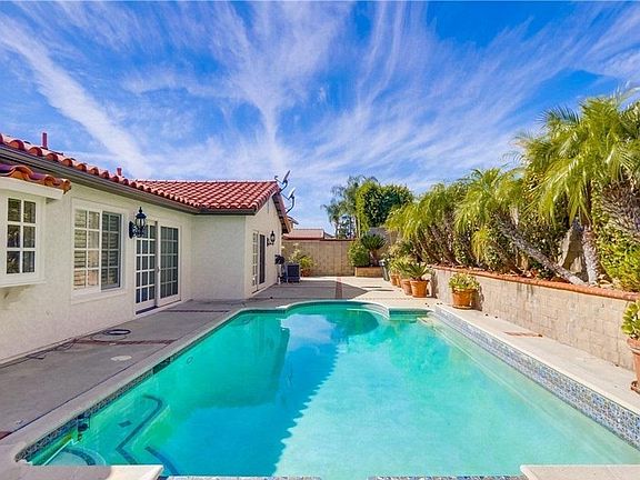 Beautiful Single Level Placentia Pool Home w/ Gated RV Access, on a Private Corner Lot of a Cul-de-Sac. The home has great curb appeal and an expansive front yard. The four bedroom two bathroom home has been updated. Stroll up the solid brick walkway through the arched entry and double door entry to enter a wide foyer looking forward through the family room out to the backyard and pool view. The living room features a cozy fireplace, while the kitchen includes granite countertops and backsplash, new stainless appliances (oven, microwave, dishwasher & range hood), two pantries w/ slide-out shelves, a stainless steel sink & designer faucet, beautiful cabinetry with glass doors and extra outlets for gourmet appliances, and under cabinet lighting. The home is upgraded with luxury tile plank flooring, new carpet, paneled interior doors, plantation shutters throughout, ceiling fans in almost every room (including the garage), recessed lighting and fresh new paint. The master bedroom is privately located towards the back of the home with an en-suite bathroom and a fully-tiled walk-in shower. The sliders to the pool area make for easy access to the pool and spa.There are also three bedrooms with a bathroom just across the hall. The two car garage has direct access from the home. The garage includes a laundry sink, ample built-in cabinets, work surfaces and shelving for all your tools. The home is conveniently located It is central to the 57 freeway as well as several points of interest including: Tri-City Park, Brea Union Plaza, La Floresta, Birch Hills Golf Course,Chino Hills State Park and so much more just a short drive away. Landscaping, pool service and water are included.