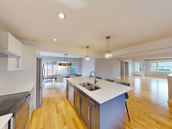 Fully finished basementBright and spacious kitchenQuartz countertopsOversized islandElegant dining areaLarge windowsFresh paint