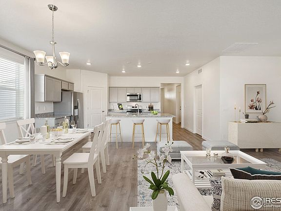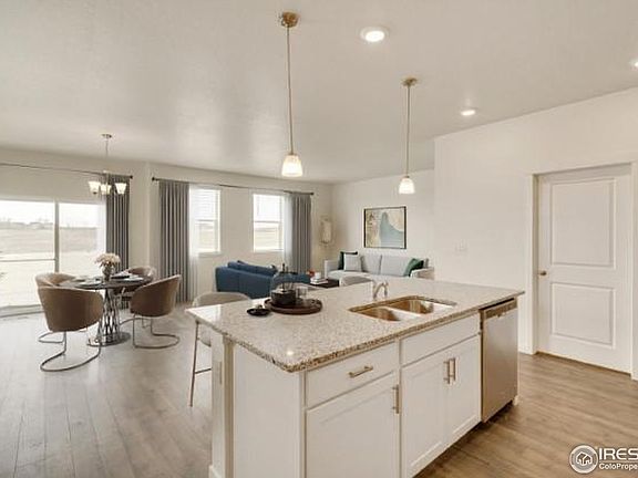 **MARCH HOME** Special rates with use of preferred lender. This spacious ranch-style home features an inviting west-facing front porch offering the perfect spot for soaking in amazing Rocky Mountain sunsets. Backing to open space with a trail to the community park makes this an ideal location! Its open layout includes flow between the great room and kitchen with central island, ideal for entertaining and gathering. Modern Breckenridge interiors with gray cabinetry and granite countertops, stainless steel appliances, and luxury plank flooring provide function and durability. The home features a spacious main bedroom suite with a generous walk-in closet plus two secondary bedrooms and an additional bath. Relaxing walks through the communities five parks, trails and open space makes this an amazing place to live! Conveniently located to I-25, with access to many of Colorado's outdoor recreation activities and attractions as well as the newest restaurants and shopping in the Northern Colorado corridor. Home includes A/C, Smart Home technology, tankless water heater, garage door openers, and front landscaping. ***Photos are representative and not of actual home***