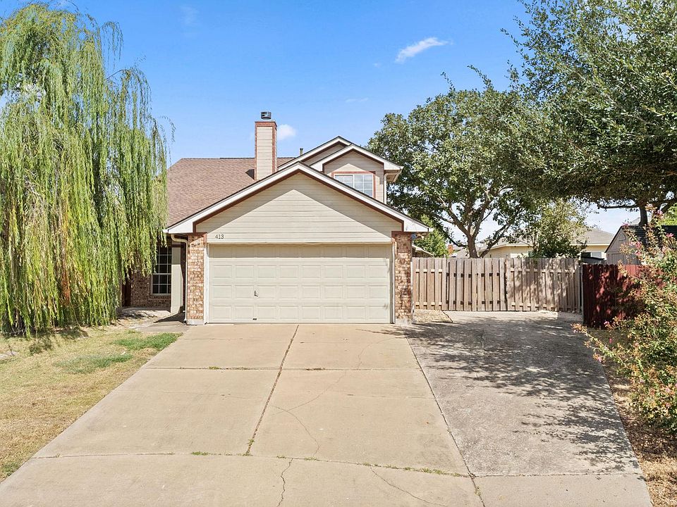 Welcome to your new home on a quiet cul-de-sac! This charming two-story residence features 3 bedrooms, 2.5 baths, and approximately 1,479 sq ft of comfortable living space. Enjoy the warmth of a cozy fireplace, laminate flooring, Carpet on the stairs and a spacious two-car garage. The kitchen boasts stainless steel appliances and fresh interior paint. Step outside to a fully fenced backyard with a covered back porch and concrete flooring — perfect for relaxing, entertaining, or enjoying morning coffee. Built in 1997 on a 6,838 sq ft lot, this home offers comfort, character, and convenience in the heart of Hutto!