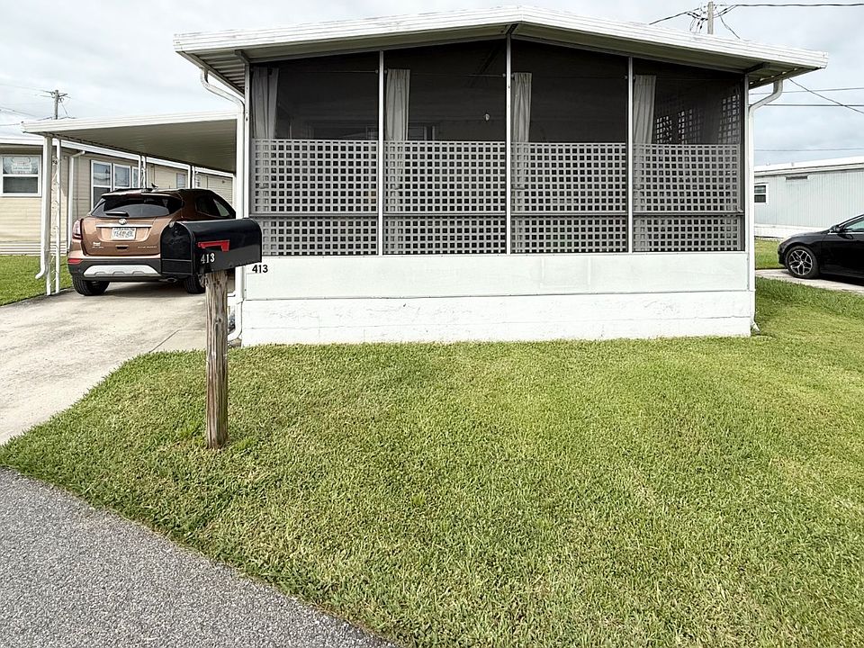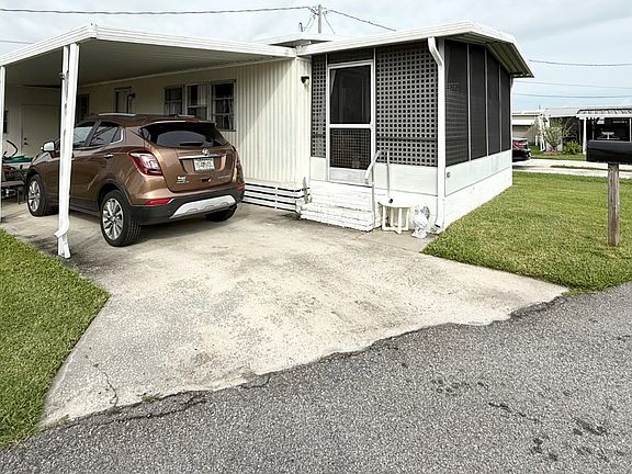 DONT MISS OUT ON THIS VERY CLEAN & WELL-MAINTAINED home is located in a wonderful and very well-kept 55+ gated community with very friendly neighbors! The lot rent is $1220.37 per month and includes water, sewer, taxes, Spectrum Cable and Internet, and the use of the amenities! The homeowner is only responsible for lawn mowing and electric! Some of the amenities include the use of the use of the heated pool, shuffleboard, putt-putt golf, pickleball, library, a game room w/ billiards and much more! The electric bill includes the sewer and trash/recycle pickup. This community is located close to shopping, medical facilities and restaurants! The roof on this home is metal and the central AC unit is a 2015 and runs very efficiently. The blower motor in the AC was recently replaced....The home has been tented and treated for termites for your piece of mind and won't have to worry! There is a nice size carport with room to park your vehicles. Use the back of the carport as a covered patio if you wish. There is an attached storage shed at the back of the carport with a washer and dryer along with room to store your things. At the front of the room is a nice size screen room where you can enjoy a cup of coffee in the morning or a glass of wine in the evening. Enter the home from the carport and find a nice size living room which has a sliding glass door leading to the screen room. The living room is open to the dining area and the kitchen is just off the dining area. The kitchen has plenty of cabinet and countertop space. As you head to the back of the home you will find lots of closet storage in the hallway along with a nice size 2nd bedroom and the main bathroom which is located just across the hall. The main bathroom has a tub/shower combo with a nice size linen closet. At the very back of the home is a large master bedroom and a HUGE walk-in closet. The master bathroom has a nice size vanity and separately you will find the walk-in shower and toilet. THIS HOME IS A GREAT HOME FOR THE PRICE!!!