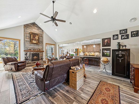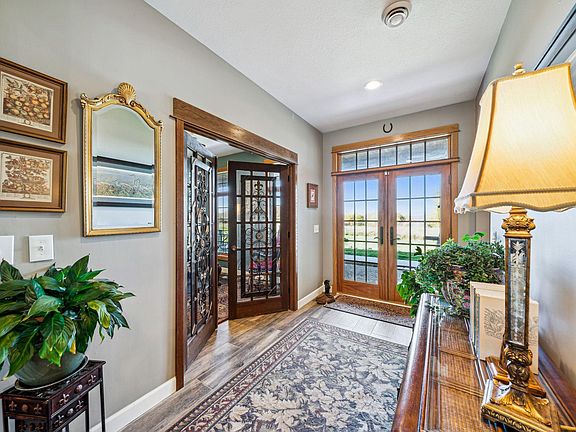 Do you love country living? This is your dream property! Custom home situated on 40 acres with mature tress/fruit trees, custom landscaping including 2 fountains with Koi and TONS of wildlife with over a mile of groomed trails. Over $300K of improvements to the property since 2021 including a 40x56 heated pole barn with 16 ft walls and 200-amp service. This quality built 4 bd/3ba home features a remarkable open floor plan with over 3000 sq ft of one-level living. It has been almost completely renovated including new wood look porcelain tile throughout. Custom alder wood cabinets and granite counter tops in the Kitchen with all new stainless steel appliances in 2021. Both house and pole barn have in-floor heat with a pellet boiler (2023) that heats both home and pole building. Back up propane boiler (2021) in home. Take in the beautiful scenery while relaxing on the back patio watching the sunrise or on the front porch for amazing sunsets all while listening to the wildlife.