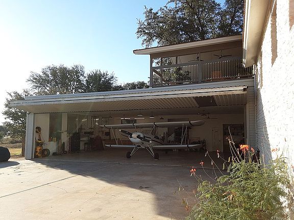 Rare hangar home opportunity. There are 30 homes within 15 miles of downtown Austin that have an attached hangar. They rarely come up for sale. This Split level Ranch style 2480 sf 3 bed/3 bath home on the prime aviation lot at Lakeway Airpark. Watch landings on runway 16 from the hangar or balcony which makes the perfect 700 sf outdoor living area. 1610 sf hangar currently home to two airplanes, a Piper Dakota, a biplane and workshop. Wilson Bifold Hangar door is 40' X 10'. Brand new 2022 kitchen, hardwood floors, guest bath, and major living area updates makes this house an easy home to move into. Austin is booming, Samsung, Dell, Tesla, NXP and many more high tech companies are all growing and expanding in the Tech Hills of Austin. Close to the city but out of the rat race, near the shores of Lake Travis. NO HOA, NO DUES. Come live every aviator's dream.