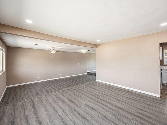 Welcome to this beautifully updated single-level home offering 3 bedrooms, 2 bathrooms, and a spacious .25-acre lot. Inside, you'll find fresh interior and exterior paint, new laminate flooring in the kitchen, dining, and sunken living room, plus plush carpet in the bedrooms for comfort. The modern kitchen shines with brand-new white cabinetry, quartz countertops, and stainless steel appliances, including a refrigerator, gas range, microwave, and dishwasher.