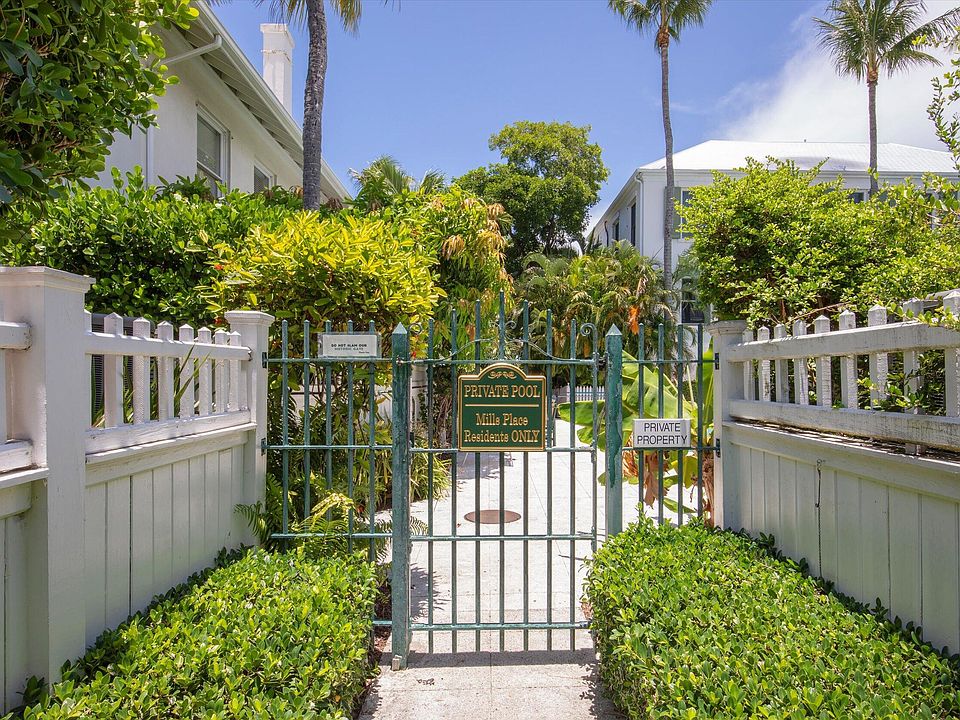 Welcome to 413 Emma Street, Unit A - a rare opportunity to own a piece of Key West history in the prestigious Truman Annex. This elegant two-story, 2-bedroom, 2.5-bath villa is located in the exclusive Mills Place Condominiums, a unique enclave of just 20 residences, thoughtfully designed within charming bungalows and the original 1844 hospital by architect Robert Mills. This beautifully maintained home offers the perfect blend of historic character and modern comfort. The open-concept living and dining area features a cozy office nook and flows seamlessly to a covered porch--ideal for enjoying morning coffee, al fresco lunches, or evening cocktails in the tropical breeze. Upstairs, you'll find two spacious bedrooms, each with its own ensuite bath, while a convenient powder room and a fully equipped kitchen complete the main level. Bright, airy interiors and timeless architectural details capture the essence of relaxed island living. Step outside to your private garden oasis--perfect for entertaining, grilling, or simply unwinding amidst lush, tropical landscaping. Take a dip in your own private pool, or soak in sunset views over Truman Waterfront Park and the harbor from your balcony. This villa offers both privacy and convenience in one of Old Town's most desirable neighborhoods.Just a short stroll or bike ride brings you to Duval Street's dining and nightlife, boutique shopping, and Fort Zachary Taylor Beach. Whether you're searching for a primary residence, a vacation escape, or a high-value investment, this Mills Place villa is an exceptional find in the heart of Key West.