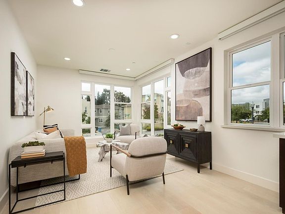 Flooded with natural light from expansive windows, this spacious corner unit offers 4 bedrooms, 4 bathrooms, and approximately 2,454 sq. ft. of thoughtfully designed living space. Built in 2017, the home features sleek architecture and an open concept layout ideal for todays lifestyle. The chefs kitchen is a centerpiece with a six burner gas range, quartz countertops, custom cabinetry, and an oversized island perfect for entertaining. The retreat style primary suite includes a walk in closet and spa inspired bath, while additional bedrooms, including a convenient downstairs suite, provide flexibility for guests, an office, or playroom. Designer upgrades include white oak floors, custom closets, solar shades, surround sound, built in lighting, and a Nest system. The attached two car garage is finished with epoxy floors and cabinetry, while a tankless water heater and other energy efficient systems ensure modern comfort. Located in the heart of Bay Meadows, this home offers unmatched convenience with coffee shops, dining, and parks just steps away. Residents enjoy 18 acres of green space, playgrounds, community gardens, and bike paths, and close to Whole Foods & Hillsdale Mall. Commuting is effortless with Caltrain and quick connections to Highway 101 and 280.