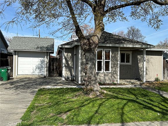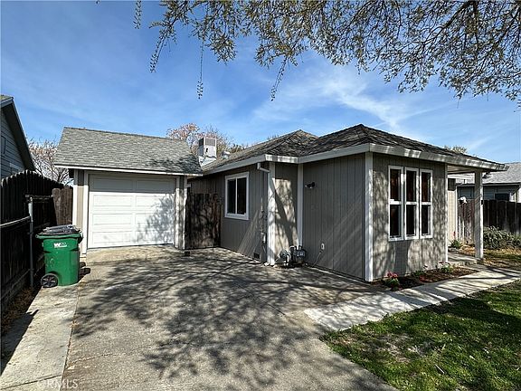 Do you want a fantastic Kitchen? Fabulous bathrooms? How about a Pool? This is the home for you! This 1325 SF home meets all of your expectations and more. Walk through the door and your built in office is right there, built in desk, cabinets, everything you need. Enter the open living space through the dining area and living room, which share newer laminate flooring, light fixtures and ceiling fan. Open to the kitchen which features a double oven, extra compact refrigerator, cabinets and counterspace galore. Same beautiful flooring as the rest of the open living space. Unique copper sink. Small refrigerator is perfect for storing beverages, wine right at the bar area, perfect for entertaining. In addition to the light fixtures, there is recessed lighting in the kitchen living room and dining area. The main bath has newer tile surround, vanity with double sinks and newer light fixtures, the primary bath also has a newer tile walk in shower. Three good sized bedrooms round out the home nicely. Walking out back, there awaits your very own pool. Cool off in the summer heat right outside your door. The back area also has a cement patio area, an older shop, animal/chicken pens and more off street parting. The back gate opens directly into the T shaped alley, making backing in a breeze. This is a must see home! Assessor records show 1 bathroom, this agent verified there are 2 baths.