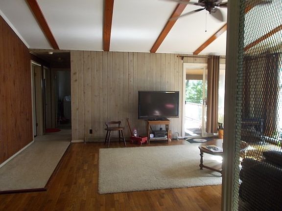 This unique home on gorgeous corner lot looks like it belongs in a magazine, open airy layout adds to the charm, living room has great cross lighting and ventilation with overhead windows and vaulted ceiling, thermal curtains around picture window block out the heat in summer cold in winter (included with full price offer) gas HW baseboard heat plus extra gas fireplace, oak hardwood floors, built in shelves add to the decor of the home, laundry on main floor with corner nook for office desk and large closet, kitchen has breakfast bar built in, extra storage rooms downstairs with built-in bar and elect fireplace for entertaining, outside door leads to patio with 2016 spa hot tub (included with full price offer) beautiful landscaping, back deck has views of the colored lights on waterfall at night, garage has work shop area and new metal roof. Some furnishings can stay. This is a must see home!