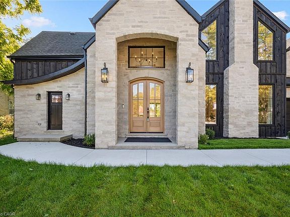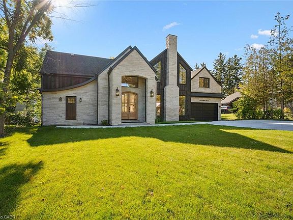Welcome to 413 Huron Road in charming New Hamburg! A truly exceptional 5-bedroom, 4-bathroom home offering over 4,400 sq. ft. of finished living space, where thoughtful design meets high-end finishes and timeless craftsmanship. The exterior blends timeless materials like stone, brick, and barn board for a striking curb appeal, complemented by a concrete driveway with integrated drainage and underground downspout management. Inside, the home is flooded with natural light thanks to oversized Raven European tilt/turn windows, which beautifully highlight the neutral tones, organic finishes, and natural hickory engineered hardwood throughout. The heart of the home is the handcrafted maple kitchen and adjoining butler’s pantry, featuring a Monogram gas oven/range, built-in 36” Fisher & Paykel fridge and dishwasher, an apron sink, and ample storage, ideal for everyday living and entertaining alike. A separate entrance leads to a private granny flat, perfect for multi-generational living or guests. Comfort is maximized with multi-zone climate control, a hot water recirculation line for instant hot water to the second-floor bathrooms, and a large Lennox natural gas fireplace for cozy evenings. Additional features include a custom vanity in the foyer bath, VIGO faucets, Red Oak stairs, and a master suite boasting oversized windows and Italian tile finishes. The home is equipped with a 200 AMP electrical panel, water softener, and plenty of storage including a large shed. Outside, enjoy an incredible entertaining space with a wood deck and an expansive grass area set on 3/4 acre in town perfect for relaxing or hosting gatherings. This is a rare blend of luxury, functionality, and thoughtful design in a peaceful, sought-after location.