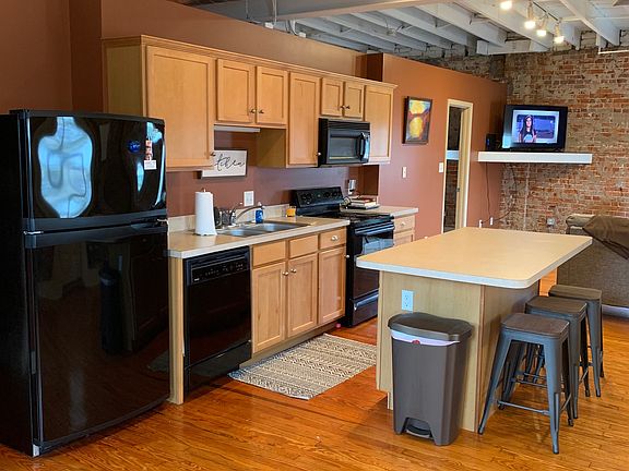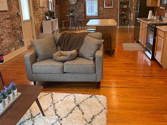 Downtown Evansville Loft Apartment available August 2025. Large, open living spaces. Hardwood floors, exposed brick walls, large walk in closet and bathroom. Apartment also includes a large deck off the back of the unit. Lots of windows so bright and sunny. Laundry area includes washer and dryer. Fully equipped kitchen. Easy walking distance to downtown attractions including the river front and Main Street.