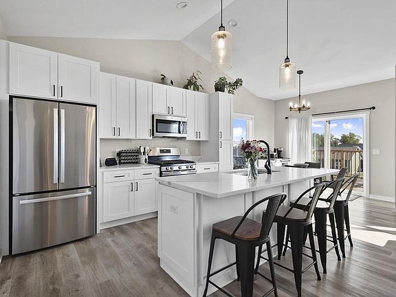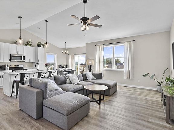 Sunshine abounds in this better than new home! Spacious open concept great for entertaining. Primary suite with walk-in closet & private bath. Neutral colors easy for adding your own taste. 2 1/2 car garage, exposed WALKOUT lower level just waiting for your finishing touches. First floor laundry, solid surface counter-tops, and kitchen appliances. Large Landscaped yard that has been fenced. Newer concrete patio off lower level patio doors, deck off of dining area in kitchen! Come take a look & explore the possibilities!