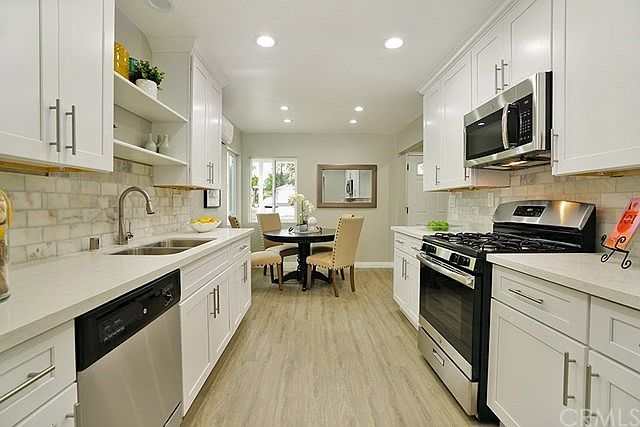 Ranch Style Charmer! Full remodel "top to bottom" from the studs! Essentially a rebuilt home.. All elements have been addressed: New roof, new Sewer line and connection, all new Kitchen, recessed lighting, appliances, shaker cabinetry, Micro, Dishwasher, pantry, SS sink, 4 burner gas oven. All new copper plumbing throughout, all new vinyl windows and sliders, heat and AC split system, new ceramic stain free plank flooring, baseboards, ceiling fans in all bedrooms, mirrored wardrobe doors, all new updated electrical services, water heater, bathroom cast iron tub, full tile shower, new vanities, toilets, mirrors and lighting. Rare to find this complete of a remodel with full permits. Huge rear yard with patio cover offers a fire pit and an open canvass for future design.
