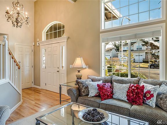 Welcome to Madison Landing! Pristine and Quality built craftsman home on a shy quarter acre lot with 4 Bedrooms and 2.5 Baths. Beautiful curb appeal with a freshly landscaped yard including a fruit tree, blueberries, and a raised vegetable garden. Soaring entry with natural lighting and sparkling chandelier. The spacious kitchen features granite counters, travertine backsplash, pendant lighting, stainless steel appliances, walk-in pantry and maple cabinetry with plenty of storage. Formal living and dining rooms with dramatic coffered ceilings and wainscoting. Large master with a 5-piece bath including corner soaking tub and a walk-in closet. Other features include custom office/den built-ins, custom closet organizers, wood blinds on main level and air conditioning. Huge fenced back-yard with entertaining deck and patio plus outdoor storage shed. 3 Car Garage with a Tesla electric charger. Issaquah Schools including Apollo Elementary--gifted program.