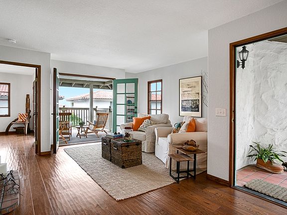 The Good Life: Walk to downtown Encinitas, Moonlight Beach, library, farmer's market, train station (why have car at all?), no yard work, no need to remodel (current owners did it for you). This is a rare downtown Encinitas top floor 1-bedroom. Single story living (except entry stairs), two decks (one with double french door access), fireplace, hardwood floors, white kitchen w/quartz counters/stainless steel appliances/breakfast counter, peek ocean views. Community ocean-view pool/spa.