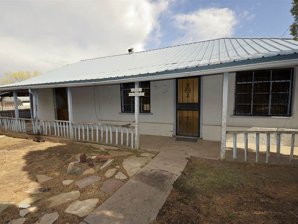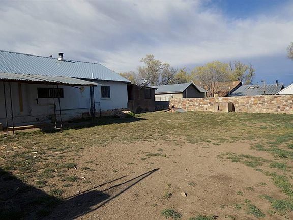 Traditional northern New Mexico style adobe home with a portal running along the front of the house and a pitched propanel roof. The large backyard has a covered patio and is enclosed with a stone wall. A carport attached to the house offers shelter for one vehicle. Recently partially renovated, with new floors, walls, appliances, and hot water heater.