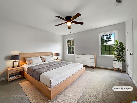 Fresh interior paintCozy fireplaceDouble sinksAmple outdoor spaceNeutral color paint schemeCovered patioPrimary bathroom