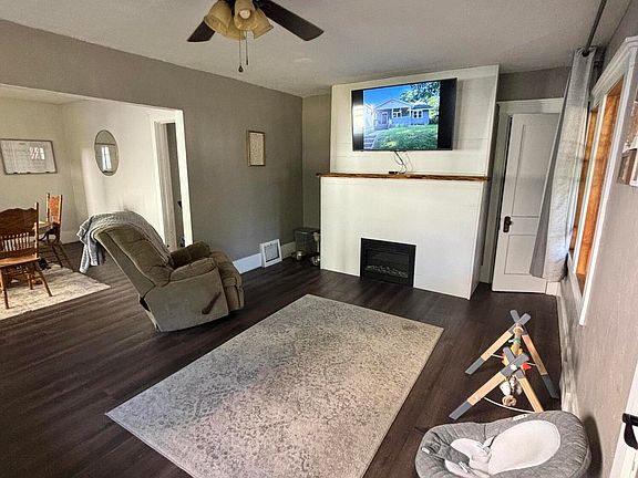 Welcome to your dream home in the heart of Big Rapids! This lovely single-family home offers 1,200sqft of living space with 10-foot ceilings on the main floor and basement. Enjoy the adorable covered porch with a cozy swing, perfect for relaxation. Featuring a modern fireplace, fenced in backyard, and a detached one-stall garage with an extra parking spot, this home is designed for comfort and convenience. An additional non conforming bedroom downstairs provides extra flexibility. Located in a desirable neighborhood, you're within walking distance to the public pool, scenic Clay Cliffs, and Brookside Schools. Don't miss this opportunity--schedule your showing today!